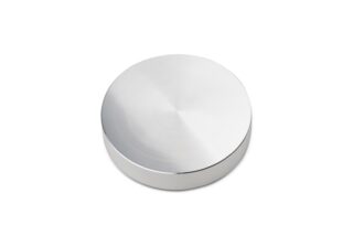 This new record puck ensures a secure fit between record and turntable. With the two different finishes, black painted and polished silver, it perfectly fits the design of of our turntables. Record pucks use weight to secure a playing vinyl record against the turntable platter. By holding the two together, the sound performance of the turntable will improve, in timing and depth of sound. With a weight of 190 grams, this puck is perfect for smaller turntables in order not to burden the turntable bearing and to prevent an increase in rumbling.